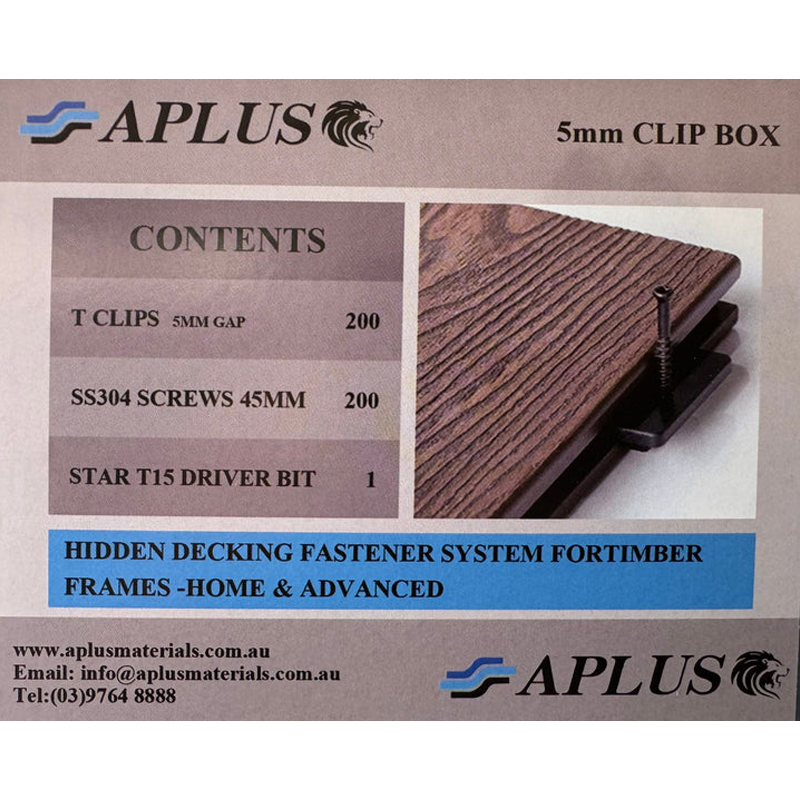 T clips 200; SS Steel Screws 200 45mm; T15 Driver Bit 1